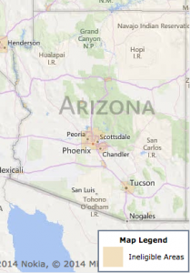 The map below shows the areas of Arizona eligible for USDA loans. Check out the USDA loan property eligibility screen for more information.