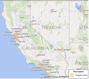 This map displays the areas of California that are eligible for USDA loans. For more detailed information, check out the USDA loan eligibility screen.